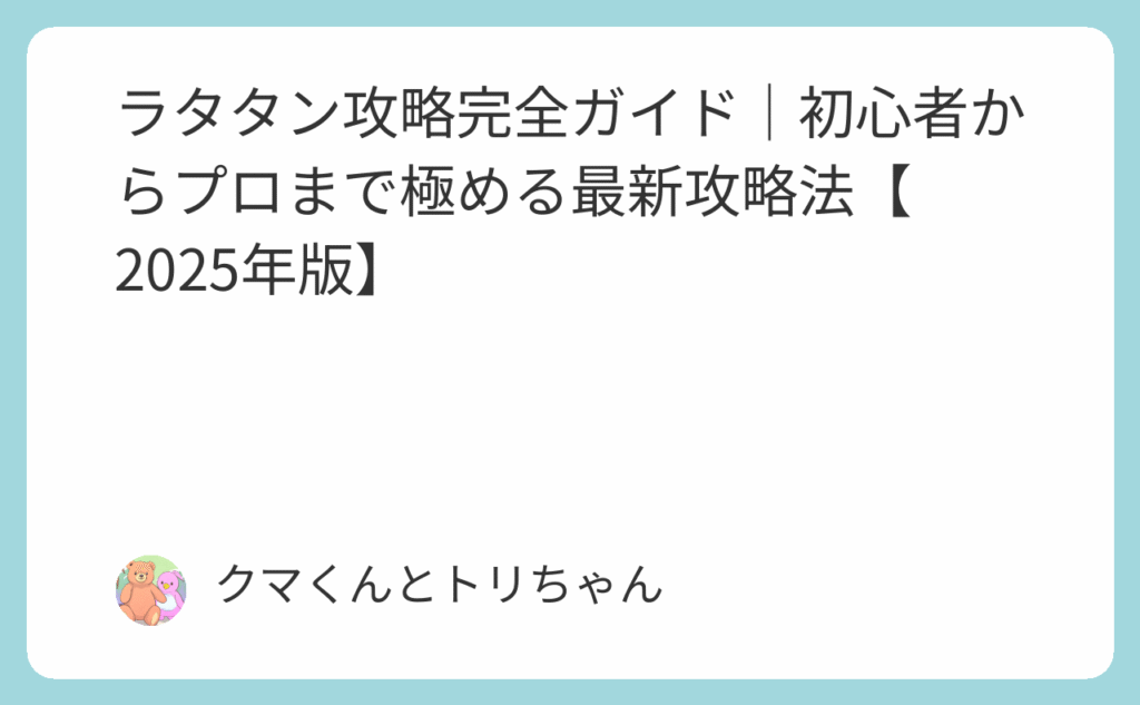 ラタタン攻略完全ガイド|初心者からプロまで極める最新攻略法【2026年版】