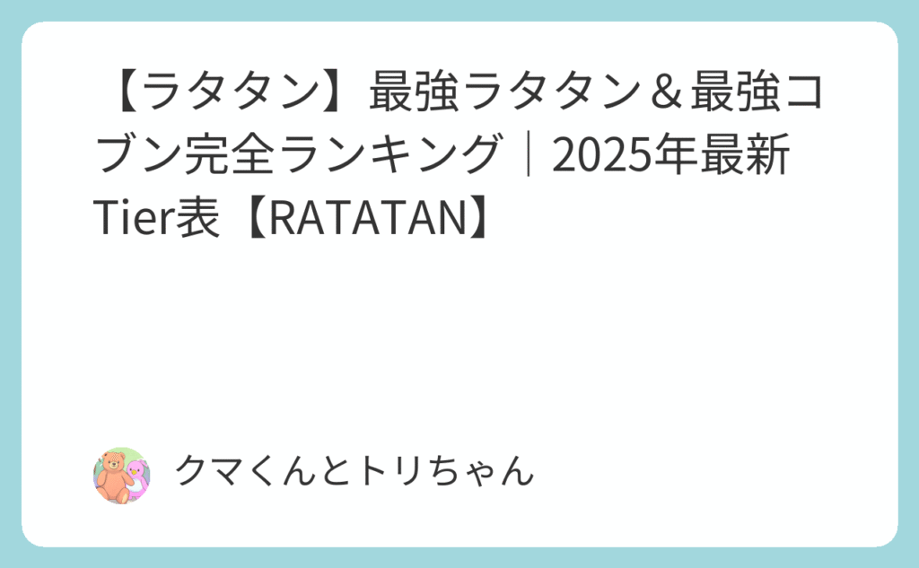 【ラタタン】最強ラタタン&最強コブン完全ランキング|2026年最新Tier表【RATATAN】