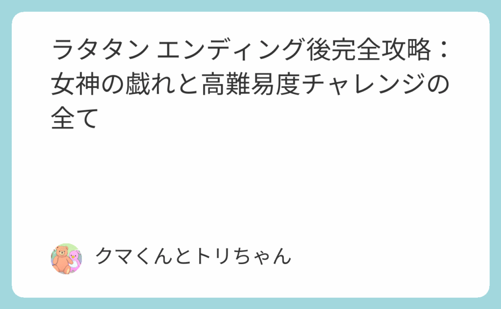 ラタタン エンディング後完全攻略:女神の戯れと高難易度チャレンジの全て