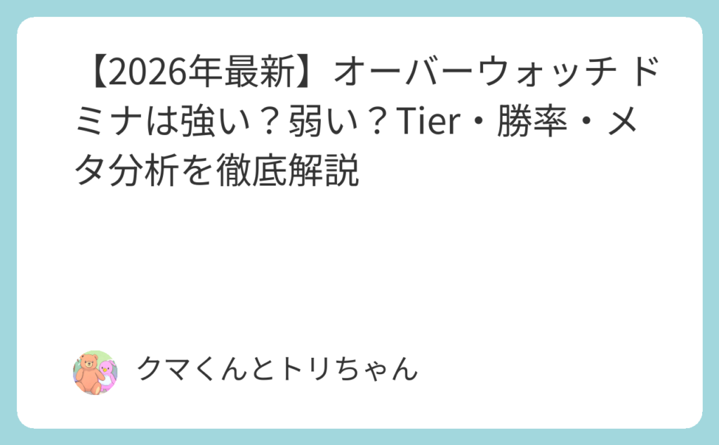 「ドミナって実際強いの?ネルフも入ったし、もう使う意味ない?」——2026年2月15日、三連続ナーフを受けたドミナの評価を巡って、オーバーウォッチのコミュニティが揺れました。 しかし実際のデータは正反対の事実を示しています。Blizzard公式統計データ... -