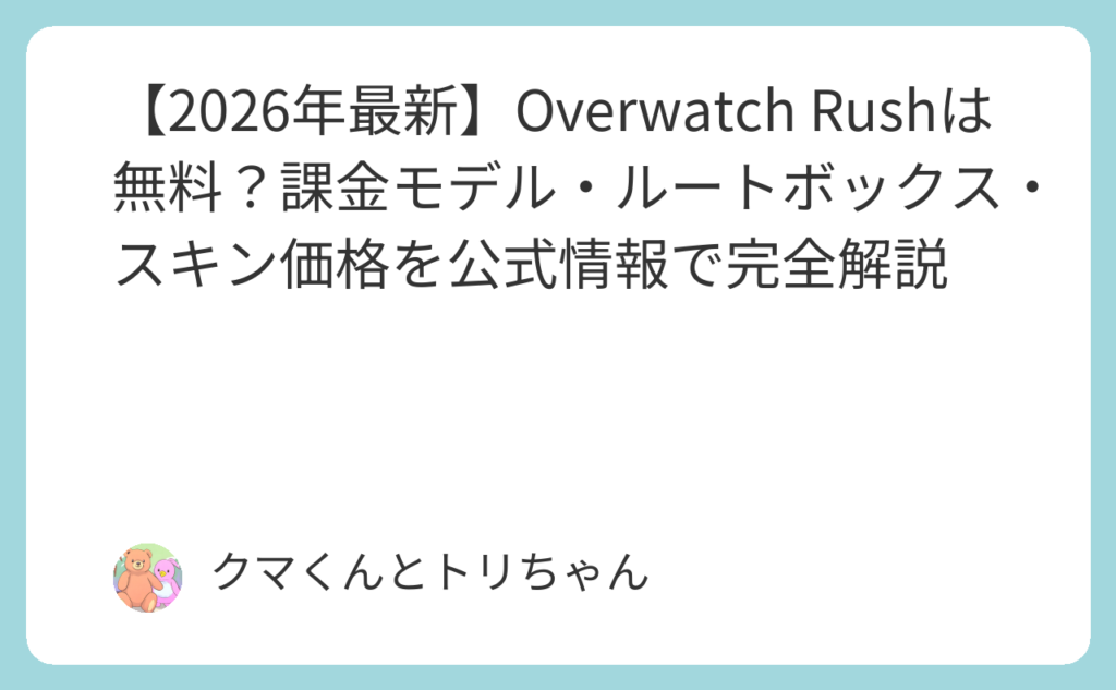 「Overwatch Rushは無料で遊べるの?スマホゲームって結局課金必須じゃないの?」——モバイルゲームのリリース発表を聞くたびに湧き上がる、この正直な疑問に真正面から答えます。結論から言えば、Overwatch Rushは基本プレイ完全無料(F2P)で提供されるこ... -