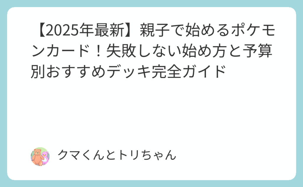 【2025年最新】親子で始めるポケモンカード!失敗しない始め方と予算別おすすめデッキ完全ガイド