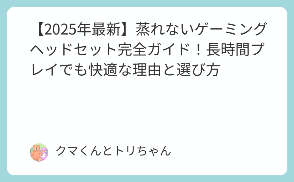 【2025年最新】蒸れないゲーミングヘッドセット完全ガイド!長時間プレイでも快適な理由と選び方