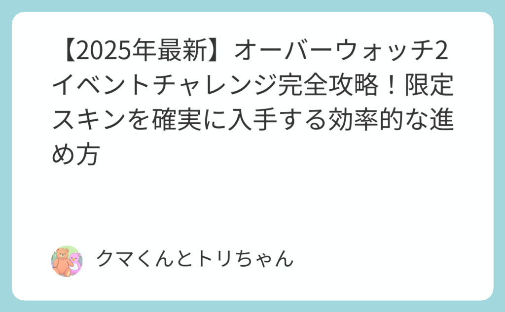 【2025年最新】オーバーウォッチ2イベントチャレンジ完全攻略!限定スキンを確実に入手する効率的な進め方