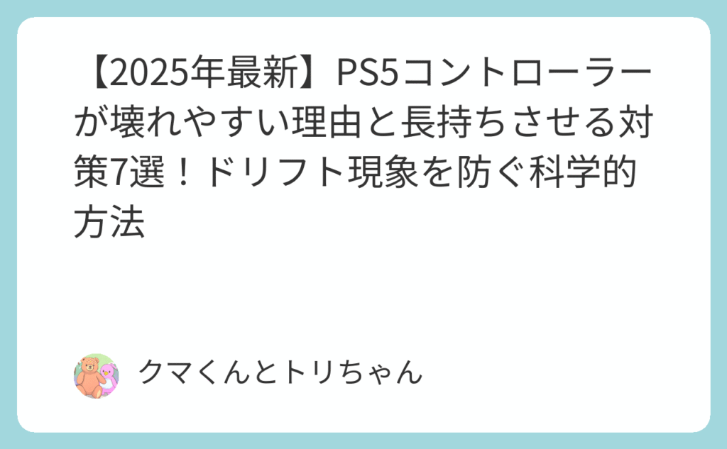 【2025年最新】PS5コントローラーが壊れやすい理由と長持ちさせる対策7選!ドリフト現象を防ぐ科学的方法