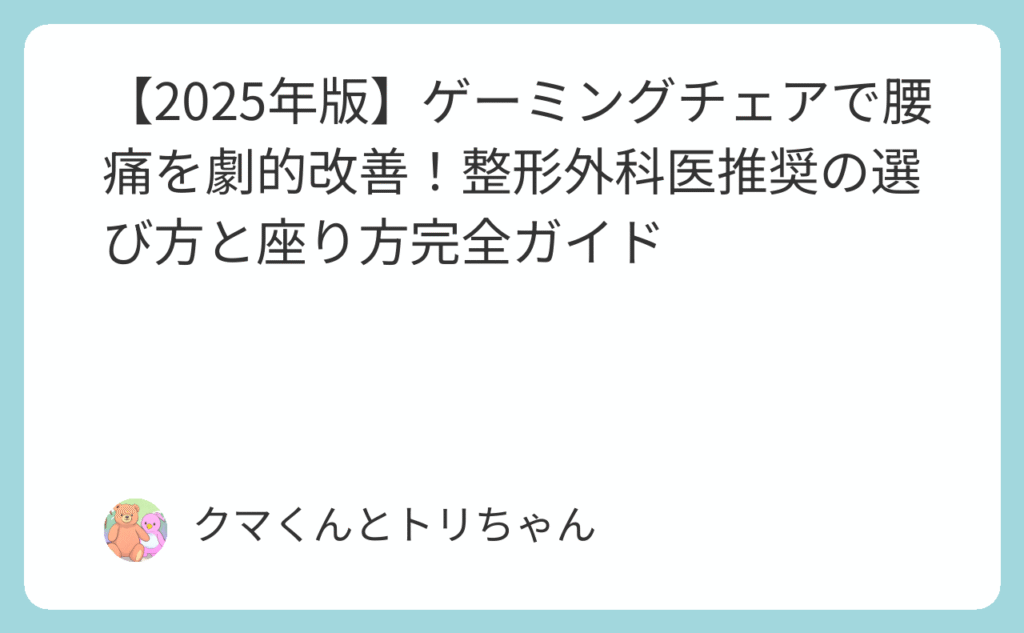 【2025年版】ゲーミングチェアで腰痛を劇的改善!整形外科医推奨の選び方と座り方完全ガイド