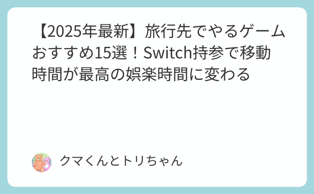 その「暇つぶし」、旅行の価値を半減させていませんか? 「新幹線で3時間、やることがなくてスマホをいじってるだけ…」 「飛行機の遅延で空港で2時間待機。退屈すぎて旅行の気分が台無し」 「せっかくSwitchを持ってきたのに、どのゲームをやればいいか分... -