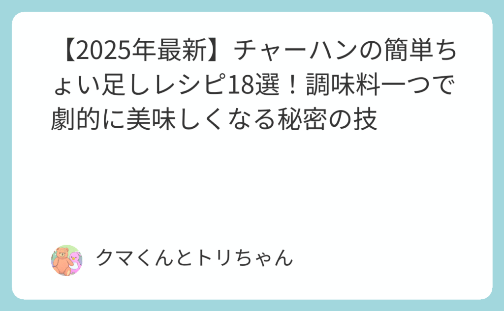 その「いつものチャーハン」、もったいなすぎます。調味料1つで激変する現実を知らないなんて 「またこの味か…いつものチャーハンに飽きてきた」 「卵とネギだけじゃ物足りないけど、具材を増やすのは面倒くさい」 「お店みたいな本格的な味にしたいけど、... -