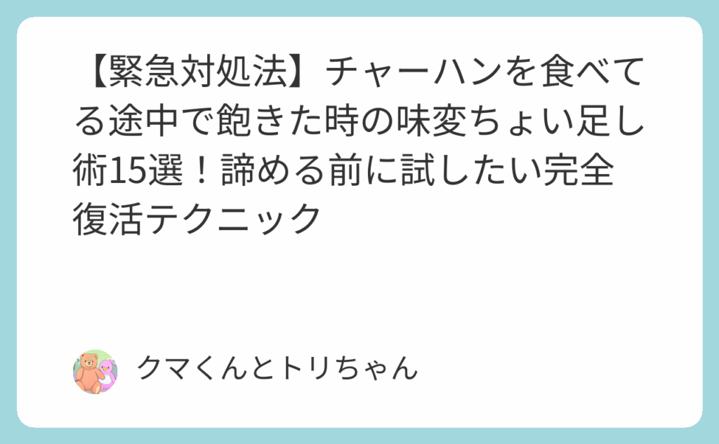 【緊急対処法】チャーハンを食べてる途中で飽きた時の味変ちょい足し術15選!諦める前に試したい完全復活テクニック