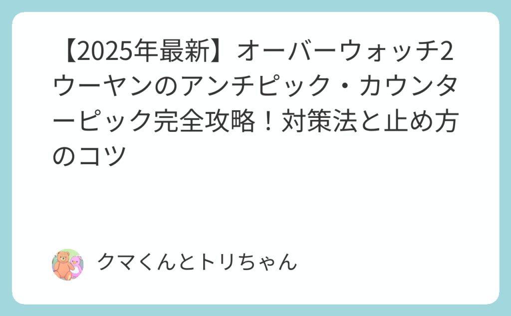 【2025年最新】オーバーウォッチ2ウーヤンのアンチピック・カウンターピック完全攻略!対策法と止め方のコツ