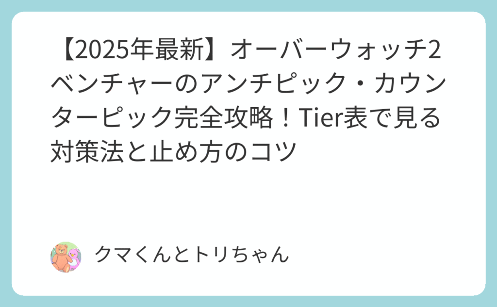 【2025年最新】オーバーウォッチ2ベンチャーのアンチピック・カウンターピック完全攻略!Tier表で見る対策法と止め方のコツ