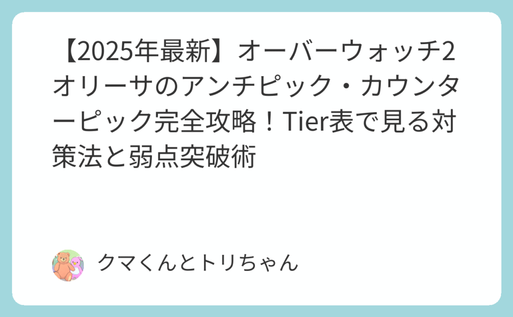 【2026年最新】オーバーウォッチ オリーサのアンチピック・カウンターピック完全攻略!Tier表で見る対策法と弱点突破術