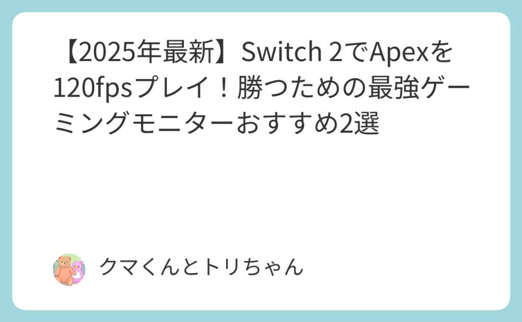 【2025年最新】Switch 2でApexを120fpsプレイ!勝つための最強ゲーミングモニターおすすめ2選