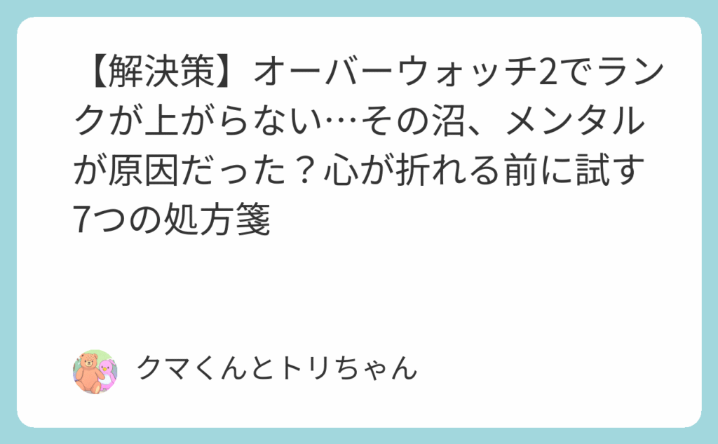 【解決策】オーバーウォッチ2でランクが上がらない…その沼、メンタルが原因だった?心が折れる前に試す7つの処方箋