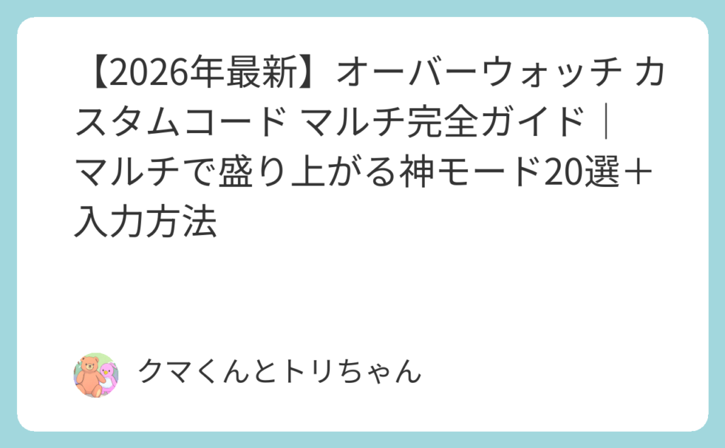 【2026年最新】オーバーウォッチ カスタムコード マルチ完全ガイド|マルチで盛り上がる神モード20選+入力方法