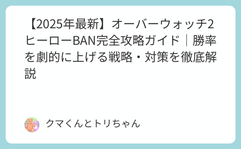 「得意ヒーローをBANされて何もできずに惨敗…」 「どのヒーローをBANすれば有利になるのか、全く分からない…」 「ヒーローBANのせいで、ライバル・プレイが運ゲーになってない?」 オーバーウォッチ2のライバル・プレイに導入されたヒーローBANシステム。... -