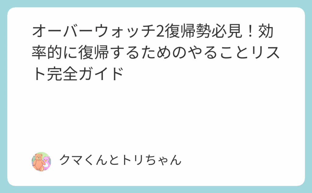 オーバーウォッチ2(OW2)がリリースされて以降、多くの元プレイヤーが復帰を検討しています。しかし、「オーバーウォッチ2 復帰勢 やること」を検索しているあなたは、きっと何から始めればいいのか迷っているのではないでしょうか。 前作オーバーウォッ... -