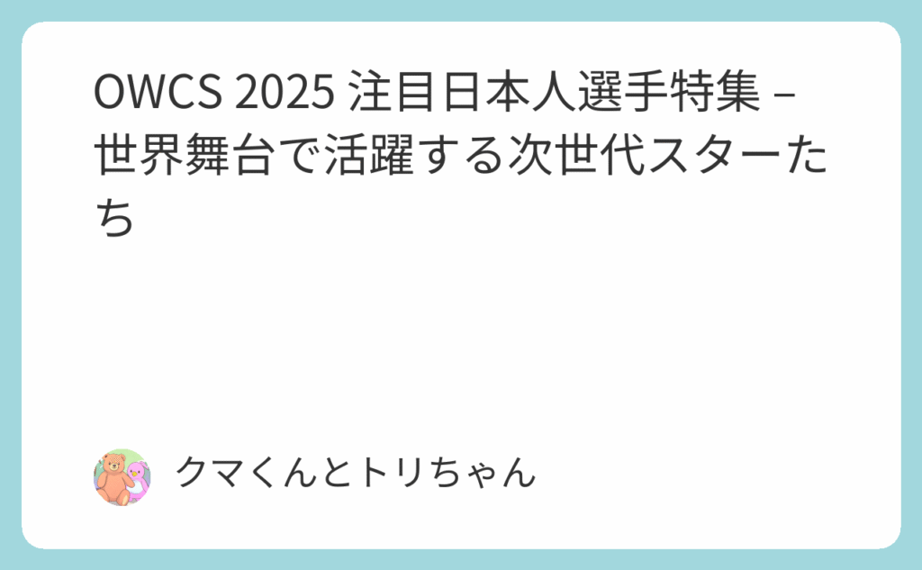 OWCS 2025 注目日本人選手特集 – 世界舞台で活躍する次世代スターたち