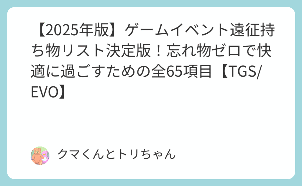 【2025年版】ゲームイベント遠征持ち物リスト決定版!忘れ物ゼロで快適に過ごすための全65項目【TGS/EVO】