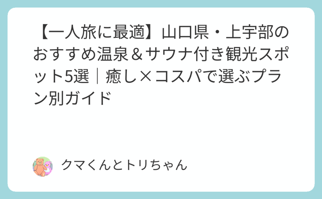 【一人旅に最適】山口県・上宇部のおすすめ温泉&サウナ付き観光スポット5選|癒し×コスパで選ぶプラン別ガイド