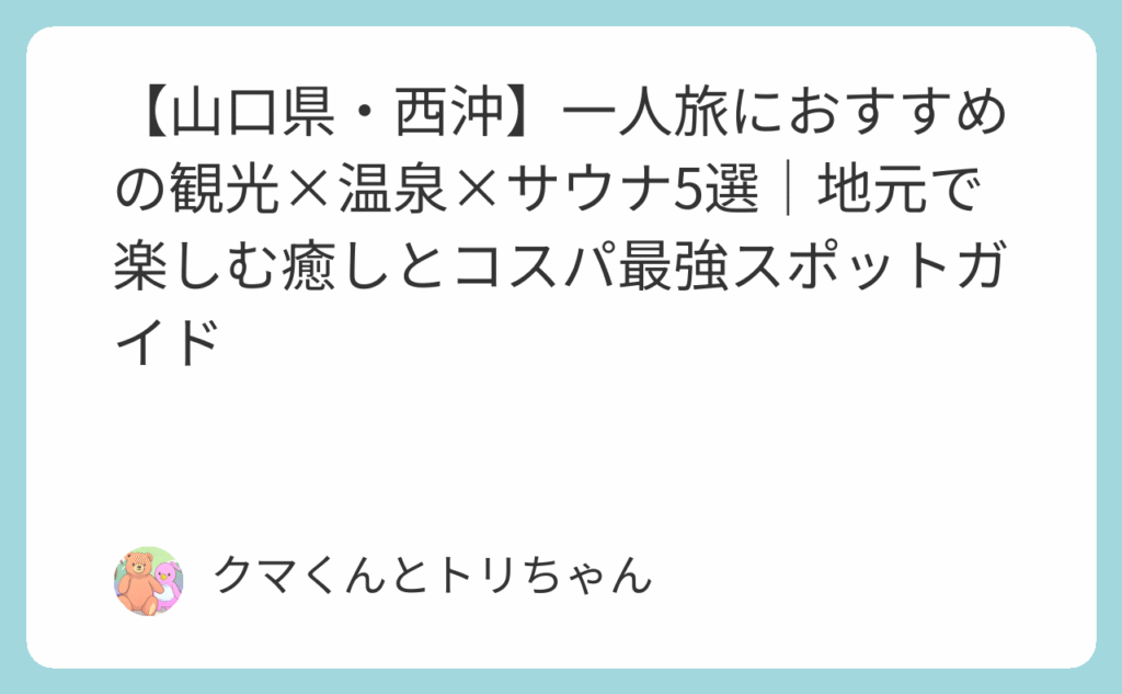 【山口県・西沖】一人旅におすすめの観光×温泉×サウナ5選|地元で楽しむ癒しとコスパ最強スポットガイド
