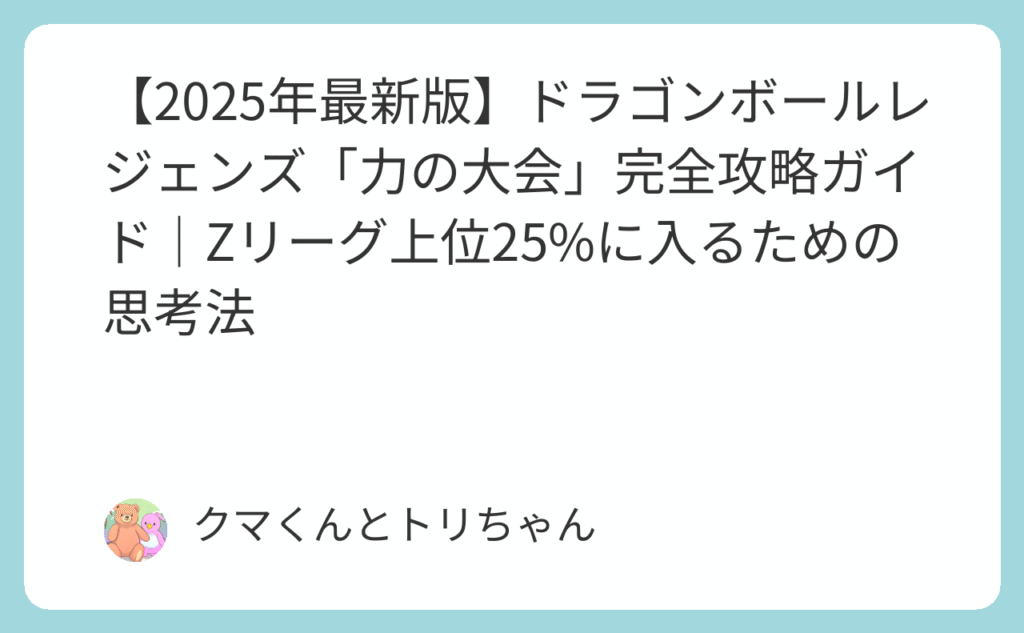 【2025年最新版】ドラゴンボールレジェンズ「力の大会」完全攻略ガイド|Zリーグ上位25%に入るための思考法
