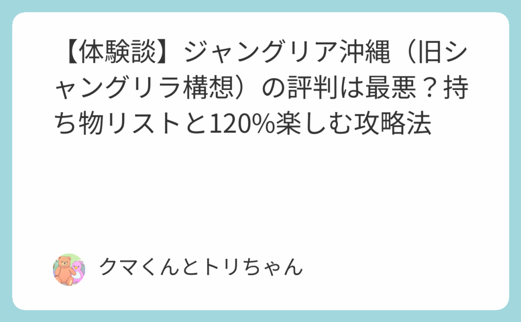「沖縄にできた新しいテーマパーク、シャングリラって聞いたけど、評判はどうなの?」「ジャングリアっていう名前らしいけど、口コミを見たら『最悪』『しょぼい』って…本当に行く価値あるの?」「初めて行くけど、何を持っていけばいいか分からない。服装... -