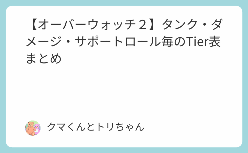 オーバーウォッチ2のヒーロー毎の有効なヒーローのtier表と、その理由記事の一覧をまとめました。この記事を読めば、相手のヒーローに有効なtier表が一目でわかります。簡潔に理由も記載しています。 この記事を読めばわかること 各ヒーロー毎の有効なヒー... -