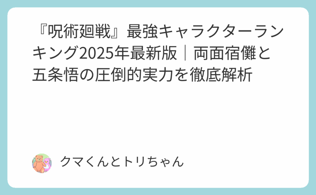 『呪術廻戦』の最強キャラクターランキングにおいて、「呪いの王」両面宿儺と「最強の呪術師」五条悟が圧倒的な実力で上位を独占しています。芥見下々先生によって描かれる呪術界には、それぞれ異なる術式と能力を持つ魅力的なキャラクターたちが登場し、... -