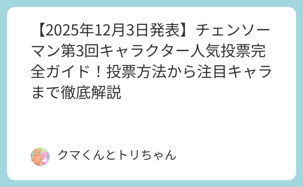 【2025年12月3日発表】チェンソーマン第3回キャラクター人気投票完全ガイド!投票方法から注目キャラまで徹底解説