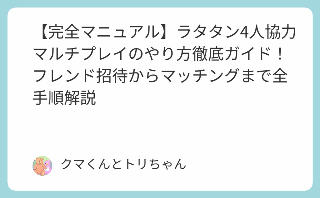 【完全マニュアル】ラタタン4人協力マルチプレイのやり方徹底ガイド!フレンド招待からマッチングまで全手順解説