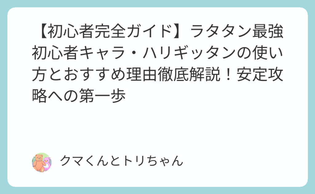 【初心者完全ガイド】ラタタン最強初心者キャラ・ハリギッタンの使い方とおすすめ理由徹底解説!安定攻略への第一歩