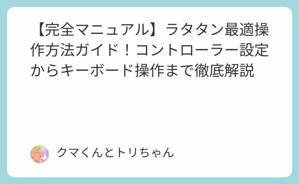 【完全マニュアル】ラタタン最適操作方法ガイド!コントローラー設定からキーボード操作まで徹底解説