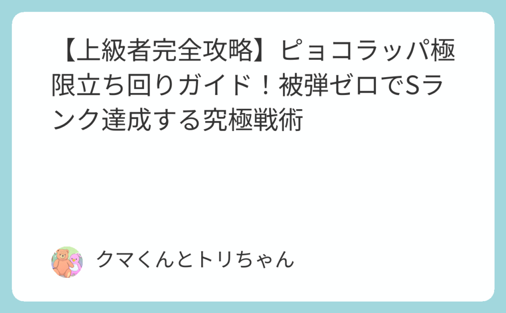 【上級者完全攻略】ピョコラッパ極限立ち回りガイド!被弾ゼロでSランク達成する究極戦術