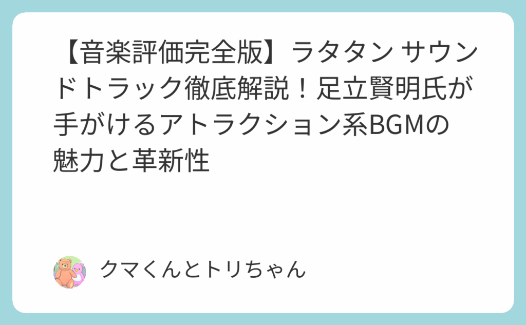 【音楽評価完全版】ラタタン サウンドトラック徹底解説!足立賢明氏が手がけるアトラクション系BGMの魅力と革新性