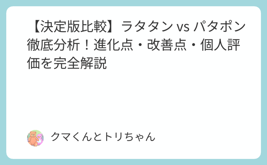 【決定版比較】ラタタン vs パタポン徹底分析!進化点・改善点・個人評価を完全解説