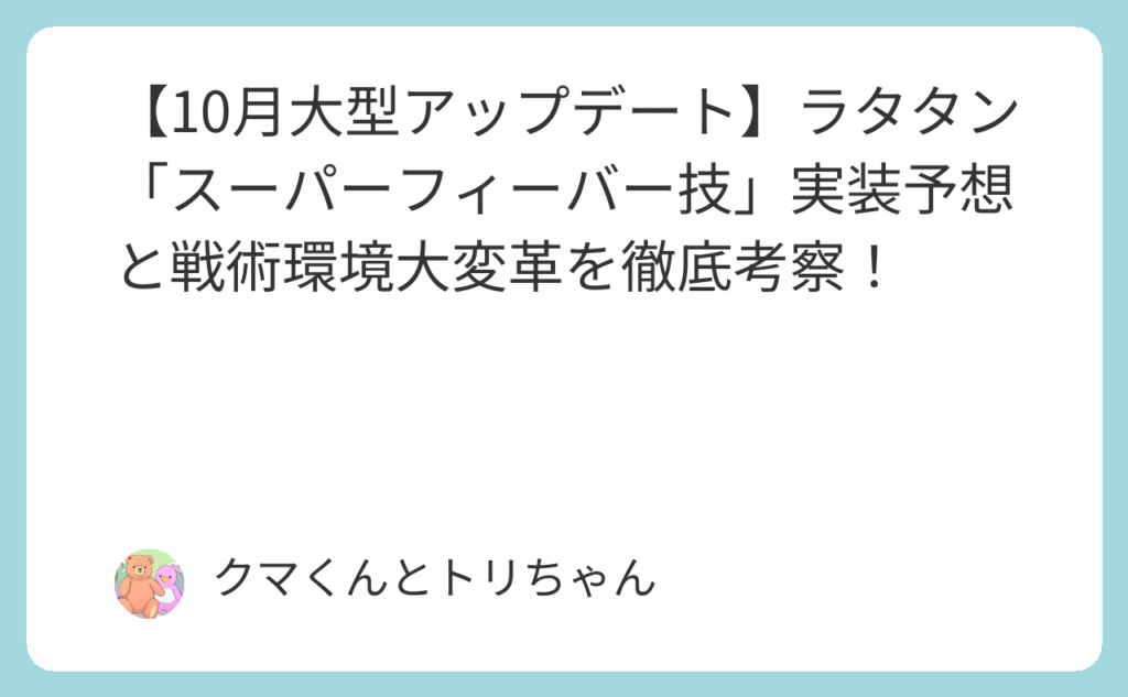 【10月大型アップデート】ラタタン「スーパーフィーバー技」実装予想と戦術環境大変革を徹底考察!