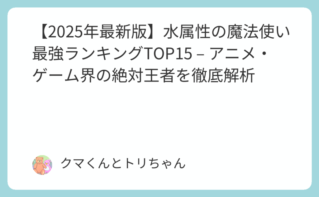【2026年最新版】水属性の魔法使い 最強ランキングTOP15 – アニメ・ゲーム界の絶対王者を徹底解析