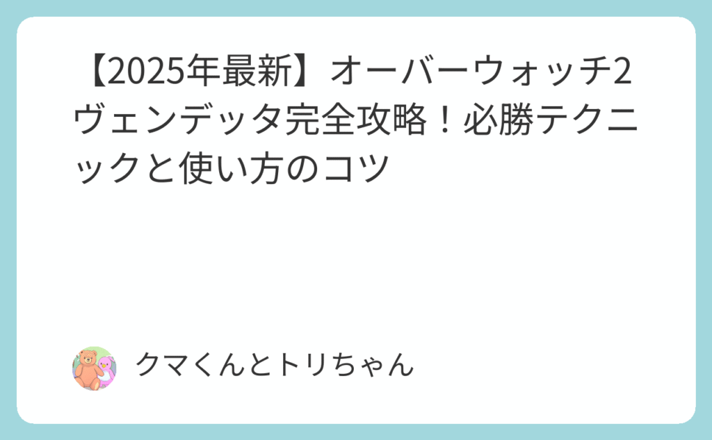 【2026年最新】オーバーウォッチ2 ヴェンデッタ完全攻略!必勝テクニックと使い方のコツ