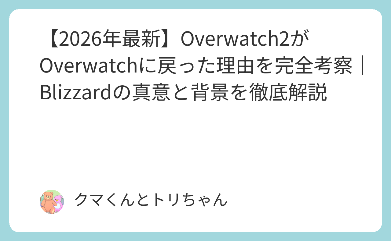 これら5つの誤解はすべて、「Overwatch 2」というブランドに不可逆的に紐づいてしまっていました。note記事(2026年2月5日)が指摘するように、「OW2は別のゲームとして成立する前に終わった」——ゲームの内容を改善しても、「OW2」というタイトルを使い続ける限り、これらのネガティブな連想は消えなかったのです。